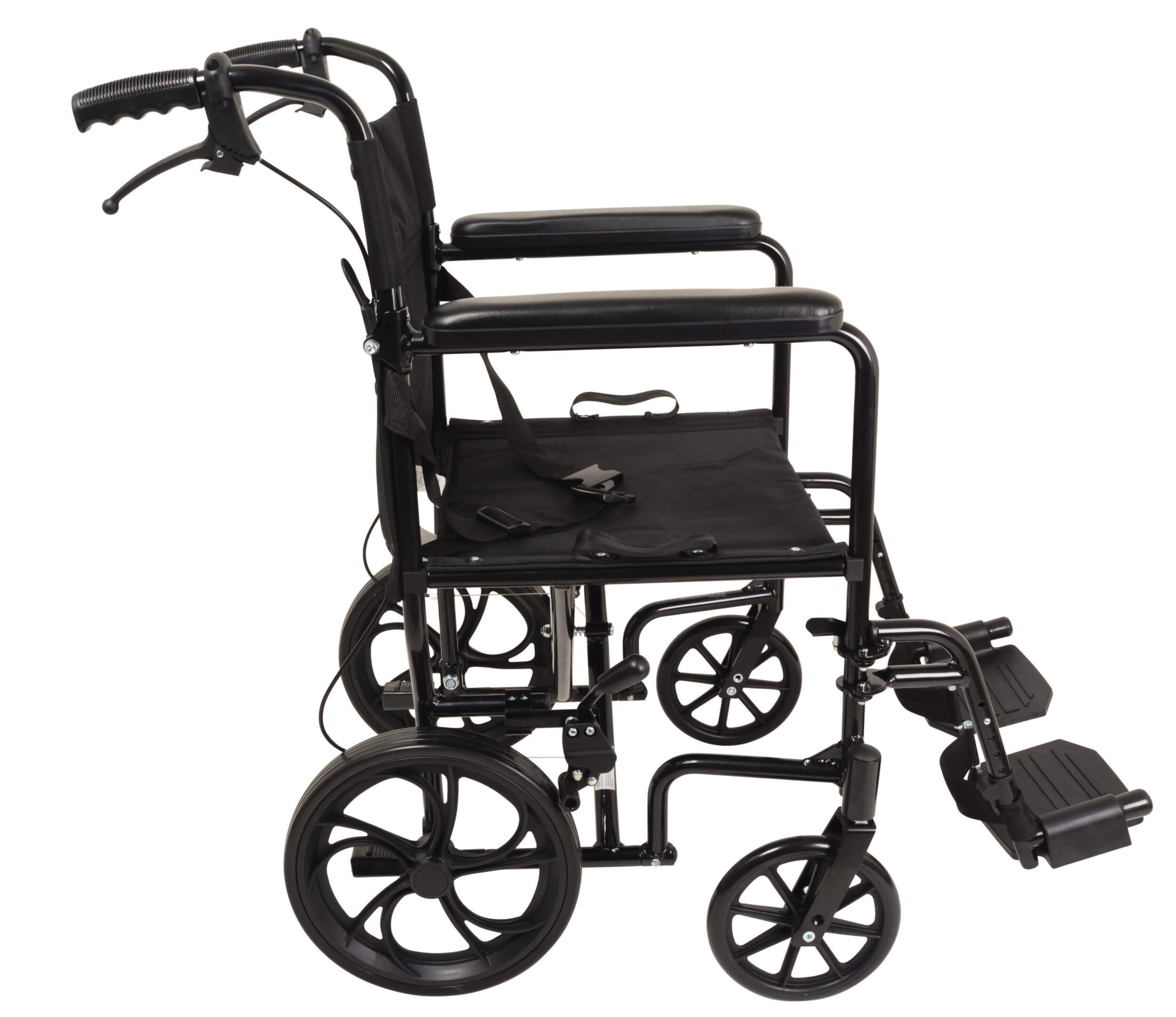 • Comes complete with seat belt for added safety, tool-free swing-away composite footrests and heel loops.